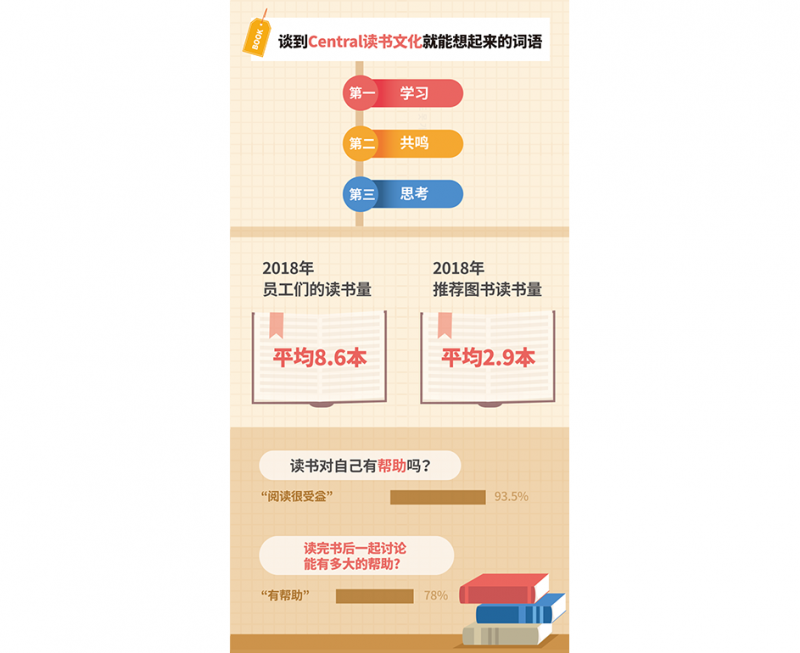 相比读书文化的引进初期,员工们对读书的认识和努力已成为Central的资产。以后我们还会继续积累该资产并使其更稳固。通过此次问卷调查我们了解到员工们对读书活动的满意和不满意的地方,我们总结了需要维持和完善的部分并制定了以后的发展方向。