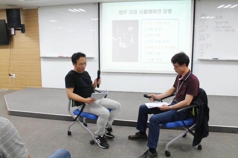 而且,干部之间也探讨了平时的成员指导中遇到的难题和困扰。以组为单位分享各自的困扰并一同想出解决方案。有些培训人员反应,在之前进行的讲课及实习固然非常好,但干部之间共享困扰和建言的过程中也学到了很多。