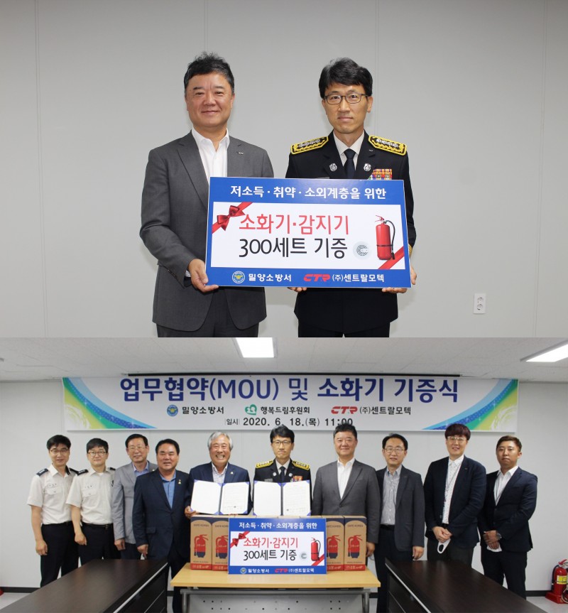 CENTRAL MOTEK became more aware of the importance of fire protection facilities and caution against fires after the Miryang factory fire on January 4, 2020, and decided to donate fire protection facilities to express its gratitude to Miryang fire station that strove to suppress the Miryang factory